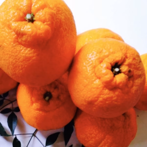 デコポンは不知火(しらぬい)という名前でも知られていて、熊本で商品登録されている春先のみかんです。頭が凸となっているので、デコのポンカン、デコポンとも呼ばれてます。