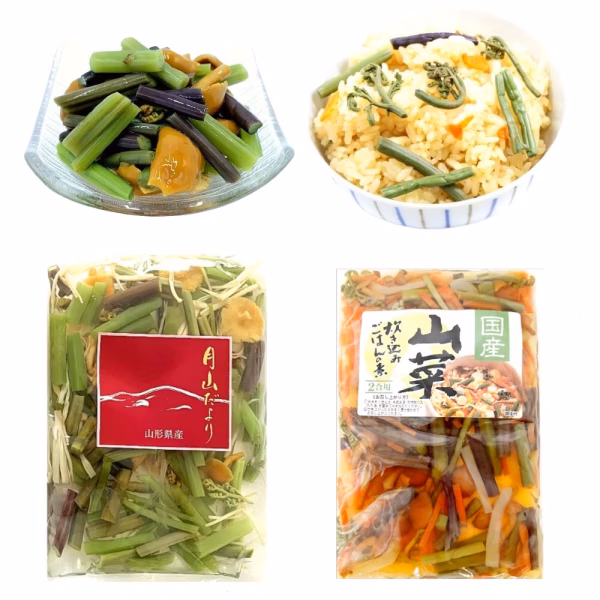 - <山菜ミックス水煮> 国産わらび・みず・なめこ・えのきたけ・クエン酸・酸化防止剤 乳酸カルシウム エネルギー13.6kcal たんぱく質3.6g 脂質0.1g 炭水化物1.6g 食塩相当量0.03g (100g当たり 推定値) <山菜炊き込みごはんの素> わらび・なめこ・こんにゃく・人参・醤油・発酵調味液・アミノ酸・クエン酸(一部に大豆・小麦を含む)