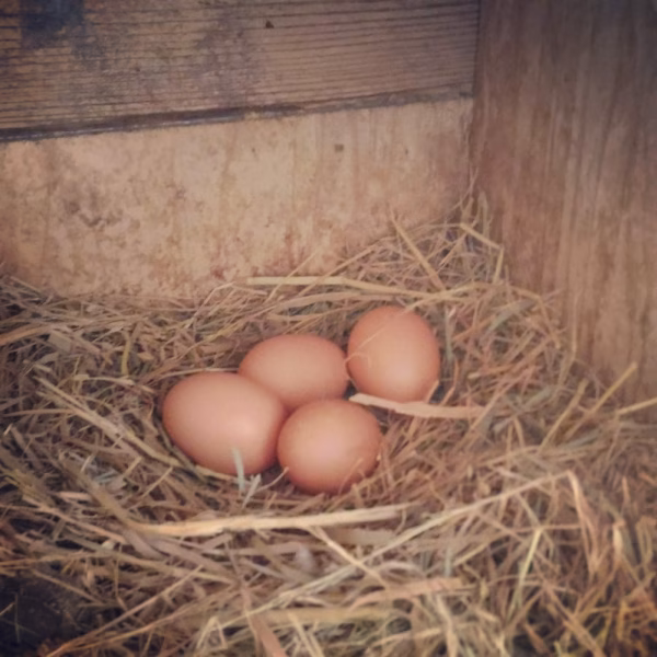 伸び伸び暮らす平飼いの鶏です。国産自家配合飼料、無農薬の季節の野菜をたっぷり食べてます。臭み無く、自然な黄身の色が自慢です。