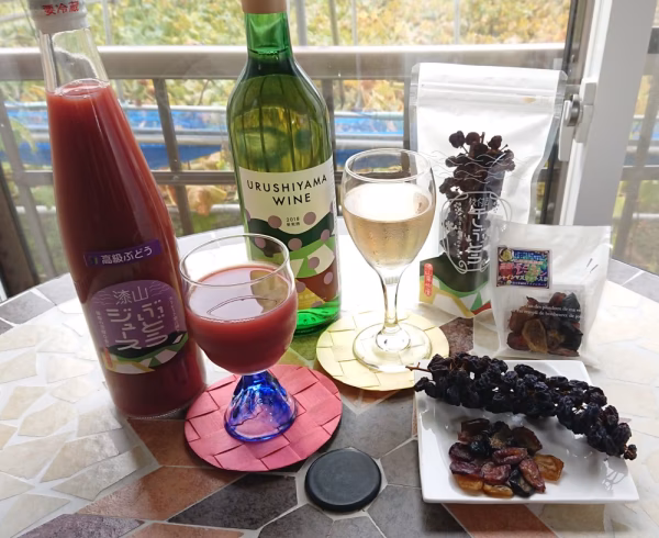 ・ドライフルーツ  ぶどう(山形県産) ・ぶどうジュース ぶどうのみ100%砂糖不使用 ・漆山ワイン   ぶどう、酸化防止剤