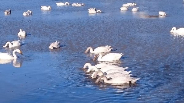 冬にも田んぼに水を張っているため、白鳥たちが飛来し草の種を食べに集まって来る年もあり、抑草作業に一役かってくれています。