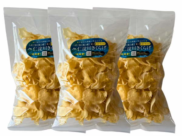<高知家のうまいもの大賞2025> とうとう受賞しました!毎年開催される高知県を上げての食のコンテストにおいて、白あらげきくらげを使用した「握り寿司」が「優秀賞」を受賞しました。オシャレな加工食品が多い中、「乾燥きくらげ単品」が優秀賞を受賞できるのはとっても嬉しく名誉なことでした。ご家庭でも湯通しした白あらげきくらげを使用して簡単に寿司ができちゃいます。(お写真を参考にしてね) それ以外には、金柑や梨、桃などと一緒にシロップ煮にしたり、サラダやスープ、酢の物まで作れちゃゃいます。 ぜひ挑戦してみてくださいね! <白あらげきくらげについて> 黒色のきくらげの中から誕生した「白色の奇跡の一枚」から特別に培養し商品化した国産品種のきくらげです。まるで赤ちゃんのように繊細で、環境の変化に敏感なため、栽培は非常に難しく全国でも生産量や生産農家は限られます。瑞々しくシャキシャキした食感が特徴の「生きくらげ」、厚みがあってコリコリした食感の「乾燥きくらげ」。熟練したスタッフが手間暇惜しまず、きくらげにとって最高の環境を整え、極上の水を使い育て上げた「白色きくらげ」は全てがプレミアム級。その価値を余すところなく証明する逸品です。 <中国台湾で有名な白木耳とは別の品種> 中国や台湾で有名な白木耳=銀茸とは「別の品種」です。デザートを作ったり、煮込んだり同じような使い方をしていただけます。 ※また商品の中には、黒っぽい白色をした商品が含まれますが、白あらげきくらげの自然の特徴ですので品質には問題ございません。 <ご購入にあたって> こちらの商品はポケットマルシェ専用のヤマト宅急便で発送いたします。1つの送料だけで対応できますので『まとめ買い』がオススメです。 <7年目を迎え『有機JAS』も取得> 2018年より高知県内では初となるキクラゲ栽培を開始し7年目が過ぎました。「生きくらげ」「乾燥きくらげ」の加工において『有機JAS』の認証も取得しました。 キクラゲ栽培一筋で経営できているのは全国からご注文をいただく皆様のおかげです。これからも皆様に喜んでいただける乾燥きくらげをお届けしますのでよろしくお願いします。 <僕たちが1番お勧めしたい大袋サイズ> 寒暖差の厳しい標高800Mの山の上で、「仁淀Blue」と呼ばれる極上のお水を使用して栽培するキクラゲは、「美しく、肉厚で食感が良い」のが特徴です。仁淀川きくらげ本来の美味しさを袋一杯に詰め込んだ僕たちが本当にオススメしたい商品です。 <商品内容> ・品種 白あらげきくらげ(高知県仁淀川町産) ・内容量 80g ・賞味期限 製造日より365日 ・保存方法 高温多湿直射日光を避けて保存 ・製造者 株式会社ツボイ 高知県吾川郡仁淀川町竹ノ谷887-1 <仁淀川きくらげの品質管理> ・水質検査 ・・・検査済 ph6.9-7.0 ・菌検査5項目・・・検査済 ・残留農薬検査・・・検出なし ・有機JAS認証 ・アメリカFSMA食品計画 ・出荷時の金属探知機検査 <乾燥きくらげの戻し方> ①ぬるま湯や水で戻す場合 約40~60分 ②ポットや電気ケトルの熱湯で戻す場合 約15~20分 ③100%戻したい場合 約6時間ほど浸水させることでしっかりと乾燥きくらげを戻すことができます。 ※※※水やぬるま湯で戻した場合の注意点※※※ サラダや酢の物などの「熱を通さない」料理を作る場合は、2〜3分ゆがいてから、冷水で冷やしお好みの大きさにカットしてご使用下さい。 ※熱湯を使って戻した場合は、殺菌を兼ねて戻していますのでそのままご使用頂けます。 炒め物やスープ、煮物などの「熱を通す」料理の場合は、戻してからすぐにお好みの大きさにカットしてご使用ください。