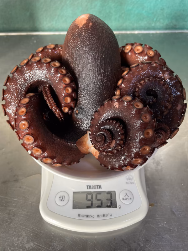 茹で上がり950gの特大タコです。