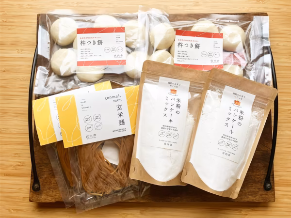 おもちのもち米はミコトモチ。白くてキメが細かく、のびの良いのが特徴です。製造の際のお水も、お米が育った土地の地下水を使用しています。
