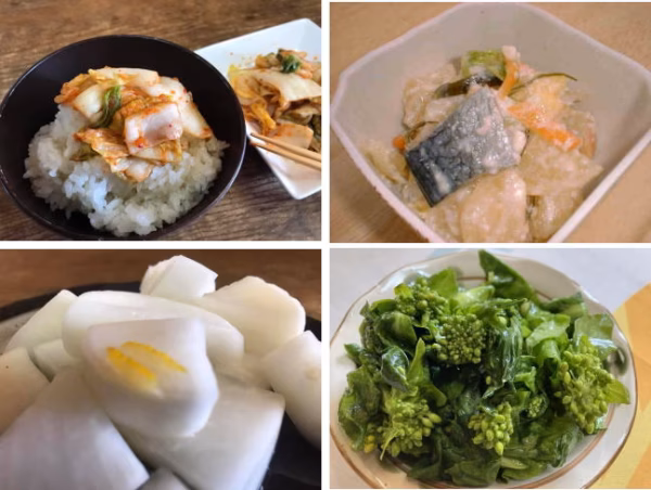 白菜キムチ、大根キムチ、大根こうじ漬け、ゆず大根、中島菜浅漬け(からし漬けに味変