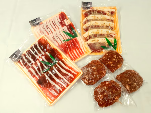 - (原材料:田舎味噌漬け) イノシシ肉、麦味噌、みりん にんにく (原材料:イノシシハンバーグ) イノシシ肉、玉ねぎ、卵、 牛乳、パン粉、塩、胡椒 ナツメグ、オールスパイス