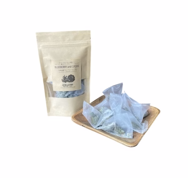 古参品種ブルーベリー葉をベースにしたカシス葉とのブレンドハーブティーです。ティーバッグ10袋に小分けしています。