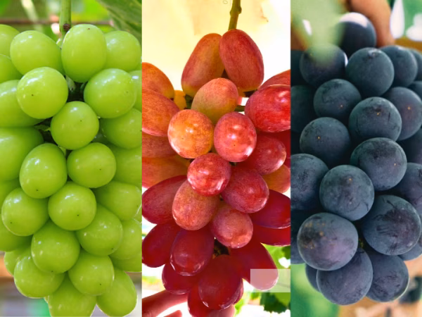 シャインマスカット:皮ごと食べていただけて種なし品種。