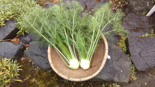 【セット内容】 フェンネル2株。 (すべて栽培期間中農薬不使用です) 【栽培のこだわり】 当農園では農薬・化学肥料を使用していません。代わりに海藻粉末など海産ミネラル資材を与え、滋味豊かに育てています。 また家畜由来の堆肥・肥料は一切使用せず、えん麦など緑肥、また山野の落葉・茅などを施用して圃場に自然生態系を再現しています。 【商品説明】 フェンネルはイタリアの高級食材で茴香とも言いその香り高さで魚料理の臭み消しとして良く使われるハーブです。 おもに肥大した根本の茎を使用しますが葉もサラダなど捨てることなく利用できす。 【配送】 常温便でお届けします。地域別に送料を設定していますので、該当する配送地域を選択してください。