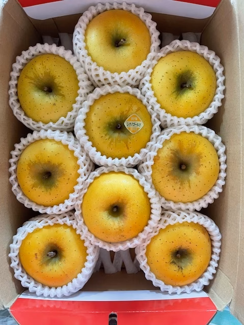スマートフレッシュ処理と低温貯蔵をすることにより長期保存が可能となり、シナノゴールド本来のうま味がそのまま閉じ込められていますので、糖度が高く甘酸適和で肉質が非常に良い黄色いりんごを味わえるものと思っております。