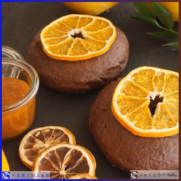 ベーグルは、ココア生地の中に柑橘ピールのラム酒漬け、果汁100%のパール柑ジャム(4枚目の写真)、そして食感のあるくるみを混ぜ込み、トップに不知火(デコポンとして販売される品種)をあしらいました。