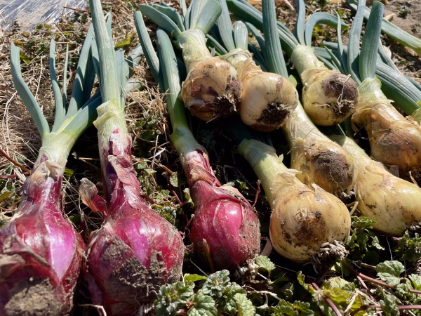 新玉ねぎと新赤玉ねぎをおおよそ半分ずつの割合でお入れします。