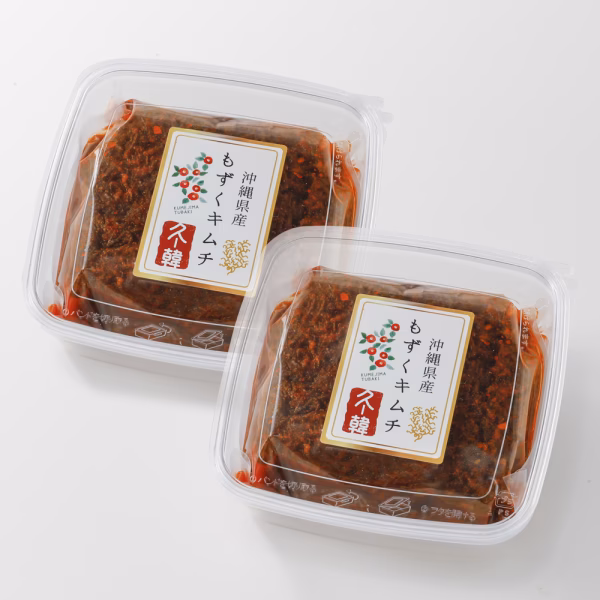 韓国のソウルフードでもある発酵食品「キムチ」と久米島産の「もずく」がコラボした一品です。
