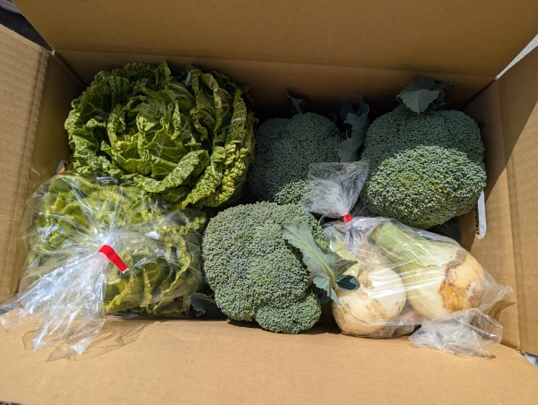 娃々菜(最終)、新玉ねぎ、ブロッコリー(大小混合)