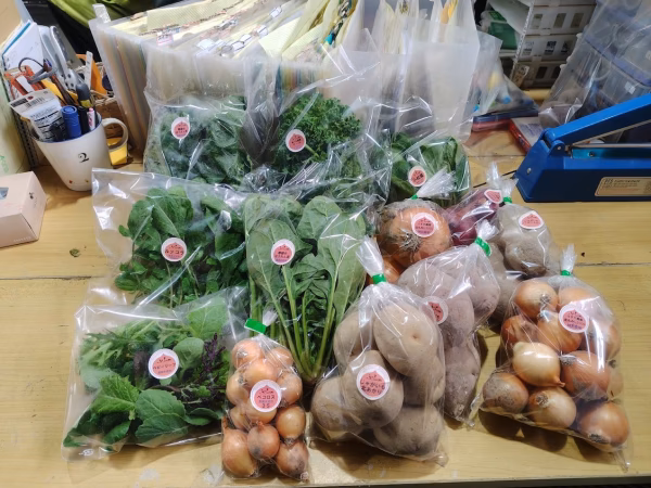 - □出荷可能野菜 ・カーリーケール ・寒締めほうれん草 ・ベビーリーフ ・玉ねぎ(北もみじ2000) ・赤玉ねぎ(レッドアイⅡ) ・ペコロス ・じゃがいも(男爵、北あかり、とうや、ノーザンルビー、デストロイヤ、レッドムーン) ・唐辛子(鷹の爪) 少量多品種栽培のため在庫切れになることもあります。 ご希望が御座いましたらコメントにて返信お願いします。
