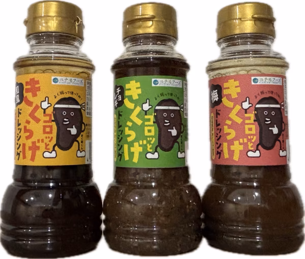 ▼宮城県産の希少なきくらげを贅沢に使用した、和風・梅・チョレギの3種類の味が楽しめるドレッシングセットです。