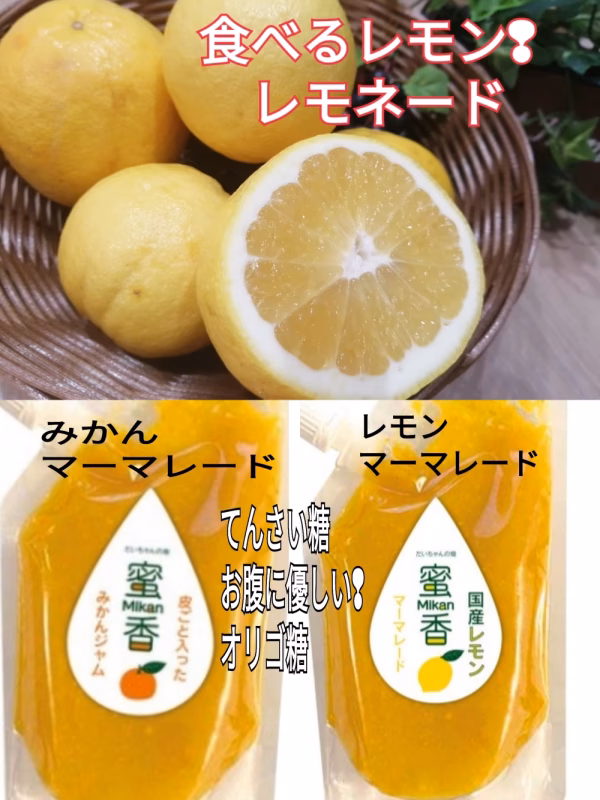 完熟みかんと国産ユーレカレモンを安心しておまかせし、低糖で出来るだけ素材を活かしたマーマレードジャムに成功しました。