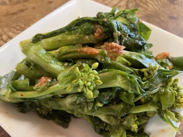 春の味覚 菜の花。このほろ苦さが後味を重視した風来のキムチのタレとも相性抜群です。