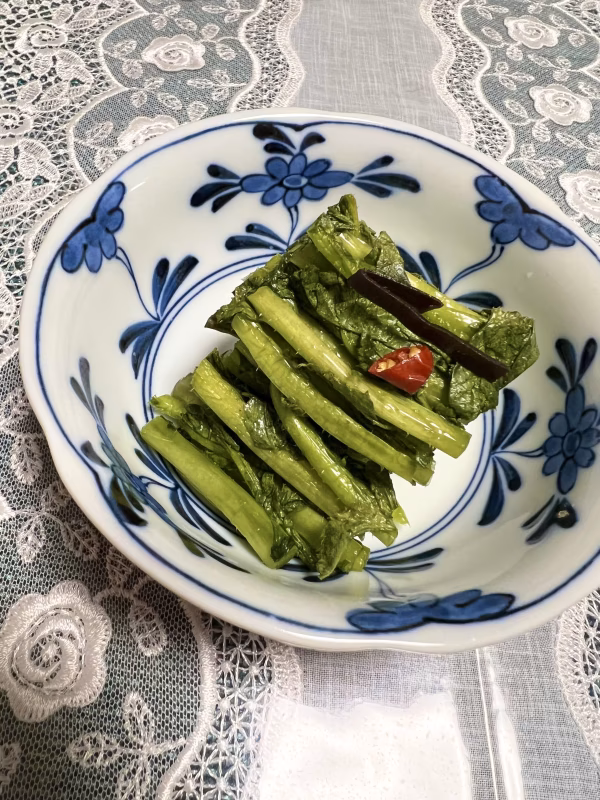 秋冬野菜の中でも美味しい根菜類の紫大根の葉っぱを使用して漬け物にしました。