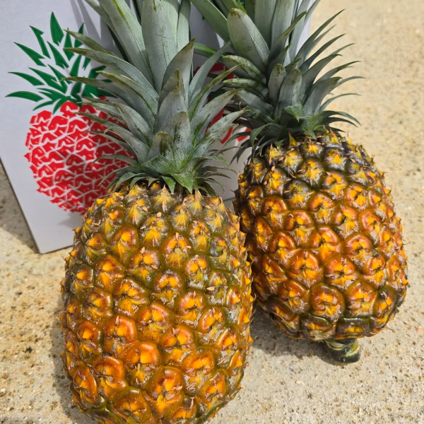 2025年6月頃〜予約販売開始予定!  ■内容量 沖縄県産『ゴールドバレル』 4~6玉 8kg~ 🍍国産パイナップルの王様!ゴールドバレル! 栽培法方が難しく、また苗も出来にくいので希少価値が高いフルーツとなっております。 そのままでも大変美味しいですが、スムージーやお菓子作りにも人気です! 芯まで美味しく食べれて、ビタミンCもたっぷりで美容効果抜群です。 パイナップルは温暖な気候の国や温かい地域でしか育てることができない南国のフルーツで、国産パイナップルだと沖縄県が全国シェア99.9%!主に沖縄県本島北部、石垣島で多く栽培されています。 ■商品の発送について ※天候の状態などで収穫日が前後しますので、お届け日指定は承っておりません。配達時間指定はできますのでご利用ください。 ※お時間指定をご希望の方は購入後に直ぐ取引メッセージにてお知らせ下さい。発送後はお時間指定出来ません。 〈指定可能時間〉 ・午前中 ・14:00~16:00 ・16:00~18:00 ・18:00~20:00 ・19:00~21:00 ※クール便にて発送となります。届き次第冷蔵庫での保管をお願い致します。 ※沖縄からの発送となりますので、到着が約2~3日程かかります。 ■商品について ※ゴールドバレルは品種の特性上、多冠芽(葉っぱの冠部分が複数ある)が多い品種となります。多冠芽の商品も含まれますので、ご了承下さい。 ※パイナップルは、1番美味しいベストなタイミングで収穫しておりますので、届いてすぐ召し上がっていただけます。パイナップルは追熟(さらに甘くなること)をしない果物で、日持ちしないため、到着後はなるべくすぐにお召し上がり下さい。 ※写真はイメージです。実際の商品とは多少違いがありますご了承下さい。 ■返品交換について ※生鮮品の為、商品の性質上お取替え、ご返品は原則としてお受け出来ません。 ※発送前に手作業で一つ一つ品質管理しており、痛みのない状態で出荷してます。時間経過や運送時の衝撃で痛みが生じる場合もございます。その際の対応は出来ません。ご理解頂ける方のみご購入下さいませ。 ■ご連絡 ※お振込お支払の方は、いつご入金予定か取引メッセージにてお知らせ下さい。 その他、ご不明点などございましたらお気軽にお問い合せくださいませ。