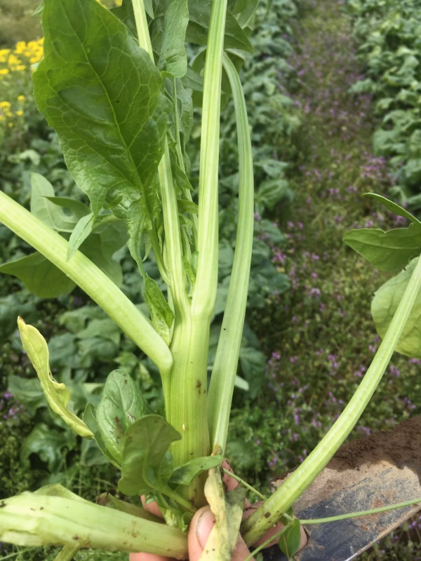とう立ち(芯が伸び始め)が始まってきているほうれん草ですが、まだ美味しく食べられます。