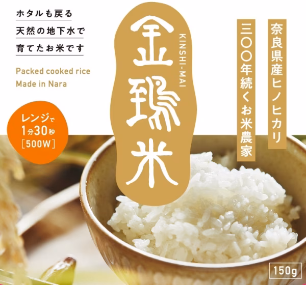 奈良の富雄でホタルも戻る天然の地下水で育てた美味しいお米を パックご飯にしてお届けします。 電子レンジ500Wで約1分30秒! 簡単にホカホカのご飯が出来上がります。 ●300年以上続く米農家が、ホタルも戻る天然の地下水で育てたお米です。 食味抜群で、冷めてもおいしいので、お弁当やおにぎりにオススメです! この地域を流れる富雄川流域の米は、昔からおいしいと言われてきました。舟運が発達し、大阪の堺の港までお米を運び、魚を買えたおかげで、富雄エリアには寿司屋が多くありました。そのため、人々はおいしいお米を求め、農家はその期待に応えるため努力してきた、という歴史があります。 金鵄米(きんしまい)は、ヒノヒカリという品種で、その地元富雄の地名の由来、金鵄伝説から金鵄米と名付けました。 ホタルも戻る天然の地下水をふんだんに使い育てています。 ●品種ヒノヒカリの特徴 「ヒノヒカリ」は、東日本にの方はなじみがないと思う方もいるかと思いますが、実はヒノヒカリの生産量は全国で3番目。温暖な気候の西日本ではメジャーに食べられているお米なんです。 丸みを帯びた小粒で、もっちりとした食感です。お米元来の風味が楽しめるお米です。 ●こんな時にパックご飯はピッタリです! ・ご飯を炊くのが面倒な時 ・ごはんを炊く時間がない時 ・1人分だけ簡単に済ませたい時 ・1パックでお茶碗約1膳分です ・電子レンジだけでもふっくら美味しい! ・深めの容器なので、器に移さずそのままでも召し上がっていただけます ・災害備蓄、ローリングストックに。 工場の専用のレトルト窯で高圧・高温で一気に炊き上げることにより、お米本来のもちもち食感と美味しさをパックに閉じ込めました。 湯せん調理もできるので、災害備蓄用にご家庭やオフィスでのローリングストックにも適しています。 ▼温め方 【電子レンジ】  500Wで1個の場合・約1分30秒、  2個の場合約2分30秒 【湯せん】  フィルムをはがさず、沸騰したお湯の中で鍋にフタ等をして、約15分加熱してください。(フタは少し浮かせてください。) 加熱後は熱くなりますので、やけどなどにご注意ください。加熱後はお早めにお召し上がりください。 ●概要 ・名称:金鵄米きんしまいパックご飯 ・商品:レトルト包装米飯(白飯) ・品種:奈良県奈良市産ヒノヒカリ100%単一原料米 ・原材料:うるち米(奈良県産)/pH調整剤 ・容量:白米1パック150g ・消費期限:製造日より365日(パッケージ記載) ・保存方法:直射日光・高温多湿を避け、涼しい場所で保存してください ・アレルギー:対象となるアレルギー品目はありません
