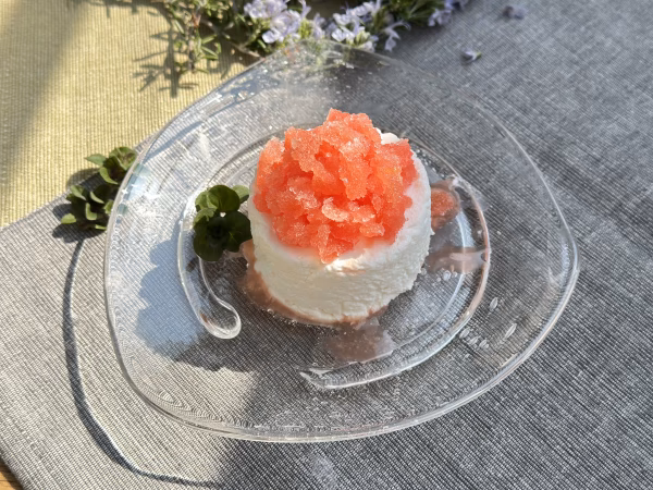 口に入れた瞬間、ふわっととろけるようなクリームチーズは、まるで天使の羽のように軽やかで、上品なミルクの甘みが広がります。その繊細な味わいを引き立てるのは、愛媛県産のブラッドオレンジを贅沢に使った、自家製グラニータ。