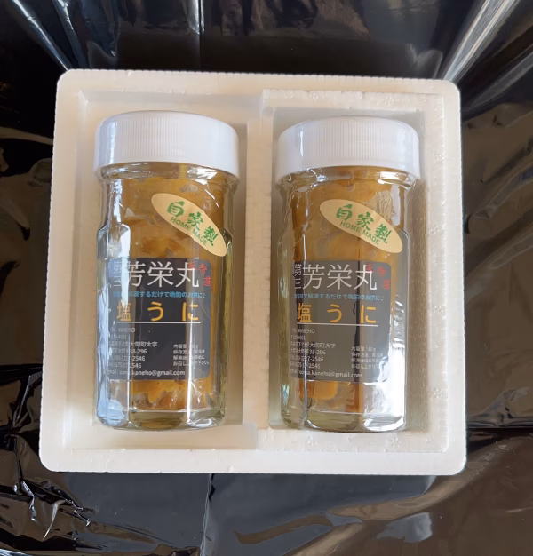 ウニ漁で獲れた鮮度抜群の貴重な新ものを手間暇かけて剥き、無添加の塩のみで旨みを閉じ込めました。