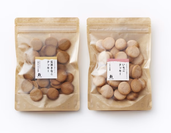 - ■いちごクッキー □原材料名:小麦粉、バター、いちご(奈良県産古都華)、砂糖、米粉(奈良県産ヒノヒカリ大野の金鵄米)、いちごシロップ (※本品製造工場では、卵を含む製品を生産しています。) □内容量:【40枚】 簡易包装 □賞味期限:製造日より120日 □アレルギー表示対象品目:小麦、乳 ■きな粉クッキー □原材料名:玄米粉(奈良県産ヒノヒカリ)、きな粉、きび糖、豆乳、米油。 (※本品製造工場では、小麦、乳、卵を含む製品を生産しています。) □内容量:【40枚】 簡易包装 □賞味期限:製造日より150日 □アレルギー表示対象品目:大豆