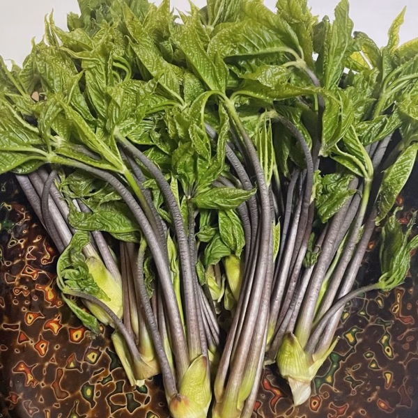 岩手県の山々に自生する天然こしあぶらは、春の短い期間しか味わえない希少な山菜です。