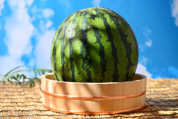 「祭ばやし」シリーズの特徴は、口にした時のコクや風味です。スイカが持つ食味が増すよう極めました。一口食べれば、豊かな香りと旨みが口いっぱいに広がります。もう1つの特徴はスイカ特有のシャリ感です。口にした時に適度な歯応えと、口の中でほどけるような食感を両立しています。