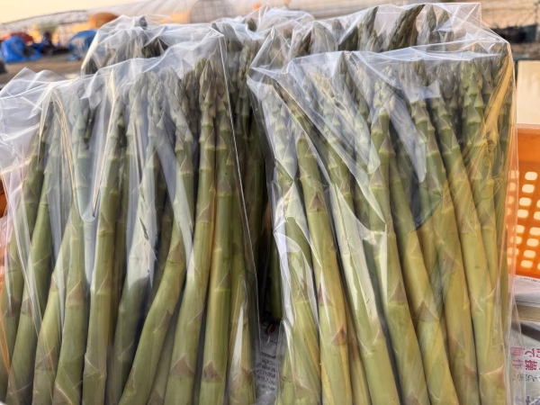 鮮度を保つため、アスパラを立てた状態でダンボールに入れて、クール便で発送します♪