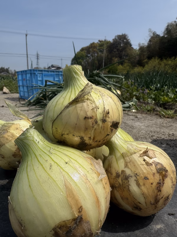 - 新玉ねぎのため日持ちしません。冷暗所に保管の上、お早めにお召し上がりください。
