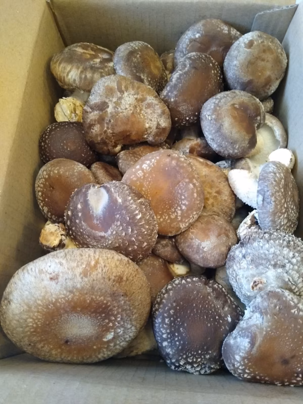 取り損ねて、成長し過ぎたお化け椎茸と、A品という最上級規格になり損ねた変形椎茸の混合詰め合わせです。
