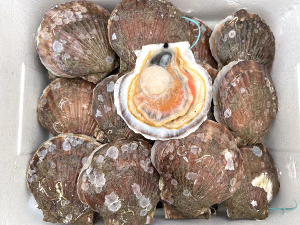 ホタテ貝は小ぶりですが養殖物(2年越冬貝、約6~10cm前後)で国内最強クラスの旨味をもった美味しい