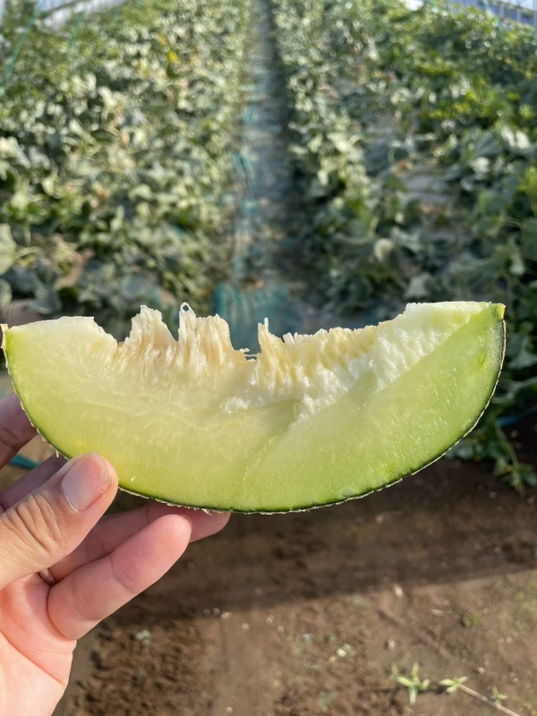 イバラキングは上品な甘さ、滑らかな舌触り、きめ細かくジューシーな果肉が特徴の青肉のメロンです。