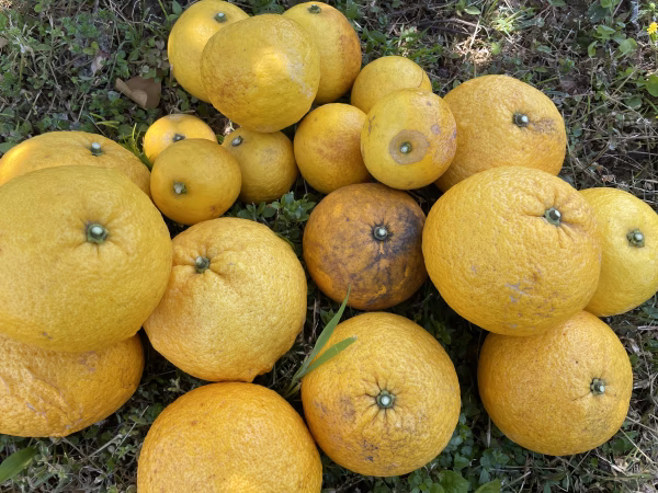 大きい農園ではありませんので、土壌の様相や樹木の状態を、細部にまで配慮することができます。それでも、お店で売っているように、見た目は決してきれいな柑橘ではなく、傷跡が普通にあります。先にも述べましたが、それは風雨にさらされながら、自然栽培という素手で病害虫と必死に戦ってきた証。