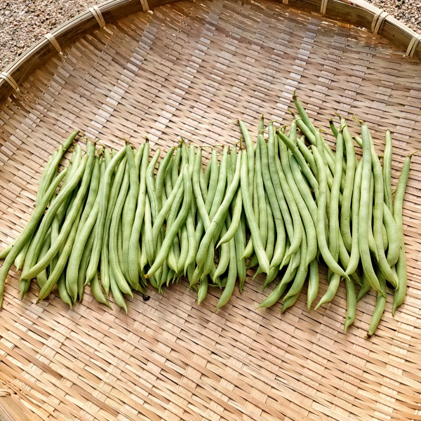 お届けする品種は「ナリブシ」で細身の丸莢でスジ無くて柔らかく、ほんのり甘みのある味わいが特徴で、クセが無いので生食ができ、サラダ、ゴマ和え、天ぷら、肉巻きなど幅広いお料理に大活躍、お料理の彩りと味わいを豊かにしてくれます。