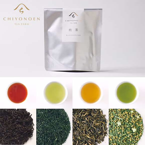 煎茶、ほうじ茶、抹茶玄米茶、矢部紅茶の4種類を使い切りやすい少量サイズのお試しセットにしました。