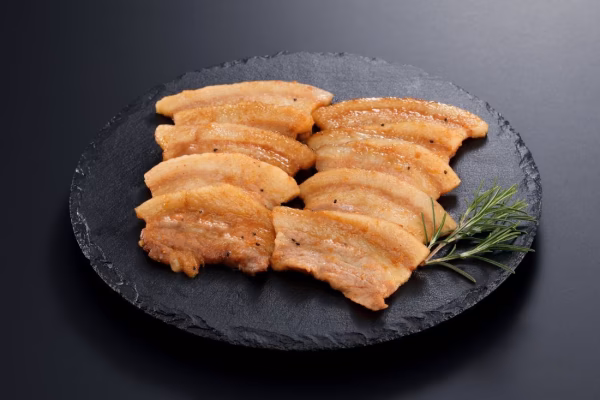 取り扱っている膨大な種類の飼料から厳選し配合することで独自の味わいを創り出すことができるようになりました。ビール酵母、酒粕などの発酵飼料を中心に、うどんやラーメンなどを飼料として与えています。発酵食品を食べ育ち真っ白な脂の豚を「雪乃醸」と命名しました。雪乃醸は、とてもあっさりとしてとろけるような味わいです。独自の飼料配合設計の結果、豚肉の脂肪酸中オレイン酸が50%に達し、他にはないうまみとまろやかさを感じることができます。