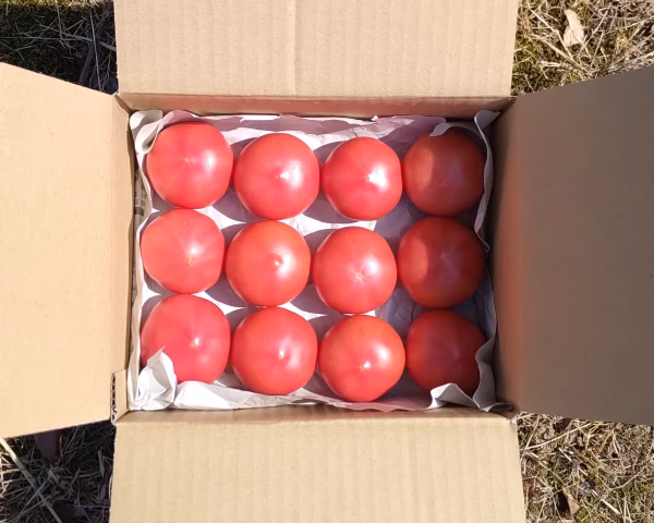 ▼商品概要 北陸の冬を乗り越え、栽培期間中、水をほとんど与えず厳しい環境下で育てた自根栽培!赤熟もぎりの王様トマト【れおん】 北陸の春トマトが始まる、品質が最も良い時期だけの為に育てた 5月限定🍅 自根栽培のトマトは一般的な接ぎ木とは違い、苗の根がそのまま育つコトで美味しいトマトが育てられると言われています 品種が持つトマト本来の味をお届け♪ 12玉詰めの他、60サイズ箱モリモリの18玉詰めもご用意できます ※大事なお願いです※ 全国一律の送料ではございません! 下記地域へのお届けご注文に関しましては、必ず該当するお届け先地域の商品をご選択下さいますようお願い申し上げます 常温での発送となります ・中国地方へのお届け → 650円 ・東北地方、四国地方、九州地方へのお届け → 750円 北海道、沖縄への発送は承っていませんのでご了承ください ※出来るだけお求めやすい価格にてご提供したいとの思いから 簡易梱包、緩衝材にリサイクル紙等の使用にご協力お願いします ▼品種・味の特徴 王様トマト【れおん】 ゼリー部が少なく、果肉をたっぷりと味わえる大玉トマト 果肉くずれしにくく、スライスし易い! 当園とお付き合いのあるフレンチのシェフからは「理想的なトマト」と お褒めの言葉を頂きました おススメは王様とまとの揚げ出し ▼栽培/生産方法、こだわり 【赤熟もぎトマト】 一般に流通しているトマトのほとんどは棚持ちの関係上、トマトが赤く 色付く前の若いトマトを収穫しています しかし、当園ではトマト本来の美味しさを味わって頂く為、収穫してから 追熟させるのではなく、樹上で真っ赤に熟させてから収穫しています 【昔ながらの土耕栽培】 当園では現在主流となりつつある水耕栽培ではなく、昔ながらの土づくりを大切にした土耕栽培にて野菜を育てています 土壌中に含まれる有機物や微生物、多様な栄養素を吸収することで風味 豊かな深い味になると言われています 【有機物・ミネラルの循環】 収穫後の残渣(作物の茎や葉、実などの有機物)は圃場の外に持ち出さず、細かく粉砕した後に微生物資材と共に全て土に還元しています 土中微生物のためのご飯です! 土中から出ていく有機物やミネラルをできるだけ少なくし、それらの循環を行うことで土づくりになると考えています ▼内容量 小玉で12玉入り、約1.2キロ ▼注文に際しての注意点(配送方法や納期指定など) ・一般流通している物とは異なる、トマト本来の美味しさをお届けしたい と言う思いから樹で赤く熟してから収穫を行い、樹熟トマトの状態で発送させて頂きます この様なトマトである為、輸送中の揺れなどで自然に割れや痛みが生じることが予想されます その際はご容赦くださいますよう宜しくお願い致します ※到着日の指定はメッセージにて問い合わせ下さい 収穫の兼ね合いや収穫量によってご対応出来る場合のみ、お受け致します ※再配達によるトマトの割れや痛みの発生を防ぐため、お客様には一度で 受け取っていただけるように時間指定をお願いしています ※上記の事項にご理解頂ける方のみ、ご購入をお願い申し上げます