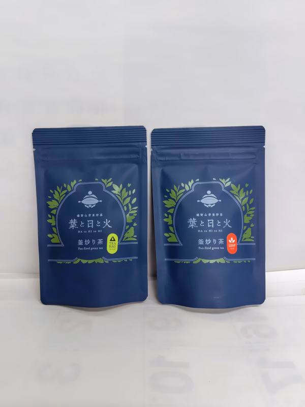 釜炒茶発祥の地、佐賀県嬉野市で4軒のお茶農家 「嬉野南部釜炒茶業組合」が生産・直売する、釜炒り茶です。 嬉野に伝わる伝統的な釜炒り製法で香ばしく仕上げる釜炒り茶は、香りたつ釜香と、すっきりした後味、澄んだ黄金色が特徴です。 組合員が2019年、2020年、2021年、2022年、2023年、2024年と6年連続、釜炒り茶部門で「農林水産大臣賞」を受賞し、その品質は折り紙付きです。 嬉野の山あいに点在する茶畑でまじめに丁寧に作った茶葉を、工場で製茶し、 生産者から直接、お届けします。 ● 釜炒り茶とは 500年以上前、日本で初めて嬉野に伝わり、現在では日本のお茶生産のうち1%に満たないほどしか作られない希少なお茶です。 通常の緑茶の「蒸し」と違い釜炒り茶は鉄釜で「炒る」工程を経て作られるため芳ばしい香り(=釡香)があり、渋みが少なくすっきりした後味に、 嬉野茶のうまみと甘みが加わります。 和食だけでなく色々な料理に合うお茶です。 ぜひ一度その味の違いをお試しください。 ●美味しい淹れ方 芳ばしい釡香を楽しむため、お湯は通常の緑茶より高い90度で淹れます。 長く冷まさなくてよいので手軽に楽しめます。 ・ティーバッグ……湯呑みやカップに80〜90度のお湯を⼊れ、60秒ほど待ってお飲みください。 ・リーフ……沸騰したお湯を⼀度湯呑に⼊れ、急須に戻し茶葉を60秒ほど蒸らしていただきます。 どちらも2煎⽬、3煎⽬もおいしくいただけます。 芳ばしい香りとすっきりした後味を活かし、お食事後に楽しんだり、 和菓子はもちろん クッキーやケーキなど焼菓子に合わせるのもおすすめです。  ●「葉と日と火」の名前の由来 茶葉と、山の日と、釜の火と。 500年以上前、中国の陶工により日本ではじめて釜炒り茶が伝わった嬉野。 その山あいに点在する茶畑で、日の光と陰が美味しい茶葉を育てる地形を活かし、茶葉と向き合い、 伝統の釜炒り製法で火を入れて仕上げる希少な釜炒り茶。 このお茶を絶やさず繋いでいきたい、4つの茶農家によるブランドです。 ●商品ラインナップ 急須なしで簡単に飲めるティーバッグと、急須で本格的に味わえるリーフを用意しています。 ・ティーバッグ3g×7pc…750 円(税抜) ・リーフ50g…800 円(税抜) ●注文に際しての注意点(配送方法や送料) クリックポストで配送します。 1セットの送料は全国一律250円です。 一回の発送で4個まで送れます。 4個セットで注文される方は、下記の組み合わせからお選びください。 ① ティーバッグ2個+リーフ2個 3,100円(税抜) ② ティーバッグ4個       3,000円(税抜) ③ リーフ4個          3,200円(税抜)