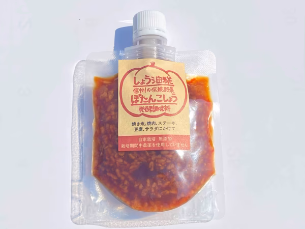 ぼたんこしょう しょう油糀×3 発酵塩×1 『ぼたんこしょう』は、信州の認定伝統野菜です。 肉厚で、辛いだけでなく、甘みもうまみもあるのが特徴です。 辛さはちょっぴり辛い程度なので食材の味を邪魔しません。引き立てます。 ぼたんこしょうは当農園で栽培しているので、農薬や、化学肥料を一切使わず栽培しております。 当農園栽培の玄米を使った麹(農薬、化学肥料不使用)を使用し、まろやかな甘み、旨味をだしています。 うま味調味料、白砂糖など一切使っていませんので、健康を気にする方に大人気です。 ☆食べ方の提案☆ ・湯豆腐、冷奴、きゅうり、サラダに添えて ・そのままで酒のつまみ ・焼いた肉や魚につけて食べると最高に美味しい ・あつあつご飯の上にのせるだけ。ご飯が進みます! ・発酵物なのでチーズとの相性もよくて、ピザソースに良いです。 ・小鉢に入れて、お料理の添え物として ・酢やオイルと合わせてドレッシングにもいいです。 辛すぎないので幅広い年齢層の方に喜んでいただけると思います。 この商品はレターパックライトに各個数を詰めた商品です。 5つ以上を希望される方はご相談ください。 他の商品と同梱もできます。その際にはご注文の品をまとめたお客様専用商品を作ります。 注文前にお問い合わせからご相談ください。 同梱することで送料を抑えられます。ご検討ください。 原材料名 醤油 米糀 ぼたんこしょう きび砂糖 日本酒 内容量 110g 保存方法 未開封時常温 開封後は冷蔵保存