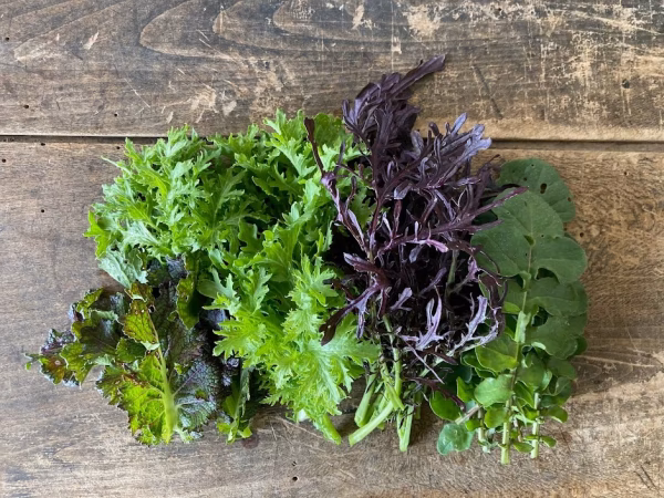 香りや風味が楽しめる4種類の葉物をセットにしています。一袋でサラダを作るとちょうどいい。そんなパックを3つお届けします。