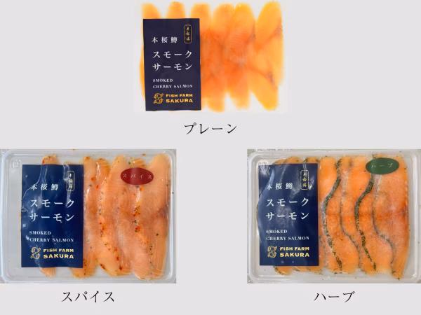- ■原材料・成分 本桜鱒のスモークサーモン(プレーン):サクラマス(宮崎県産・養殖)(さけを含む)、食塩、砂糖、ホワイトペッパー 本桜鱒のスモークサーモン(ハーブ):サクラマス(宮崎県産・養殖)(さけを含む)、食塩、砂糖、ホワイトペッパー、ディル 本桜鱒のスモークサーモン(スパイス):サクラマス(国産・養殖)(さけを含む)、食塩、マスタード、赤ピーマン、ガーリック、ペパー、パセリ、食用油脂