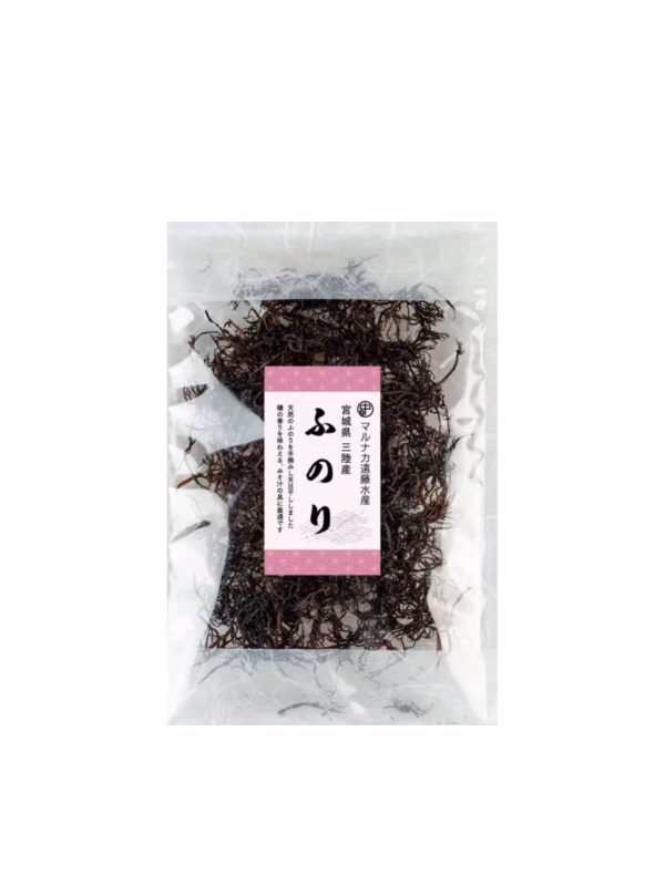 - ●ふのり 名称:乾ふのり 原材料:ふのり(三陸産) 内容量:100g 加工者:㊥マルナカ遠藤水産 宮城県石巻市北上町十三浜字大指89-2 遠藤俊彦