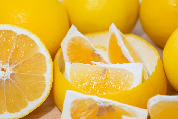 ●黄色い果皮がやや厚めで、ナイフで白い部分を残すように(白い部分には苦みや渋みはありません)皮をむきカットして食べるのが一般的で、はちみつをかけて食べるとよりおいしくいただけます。