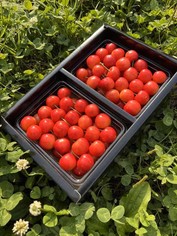 令和六年度、東根市さくらんぼ品評会にて最優秀賞一席を頂きました。2Lサイズ以上の大玉の特秀品しか入っていないので、市場ではお目にかかることのない品物かと思います。