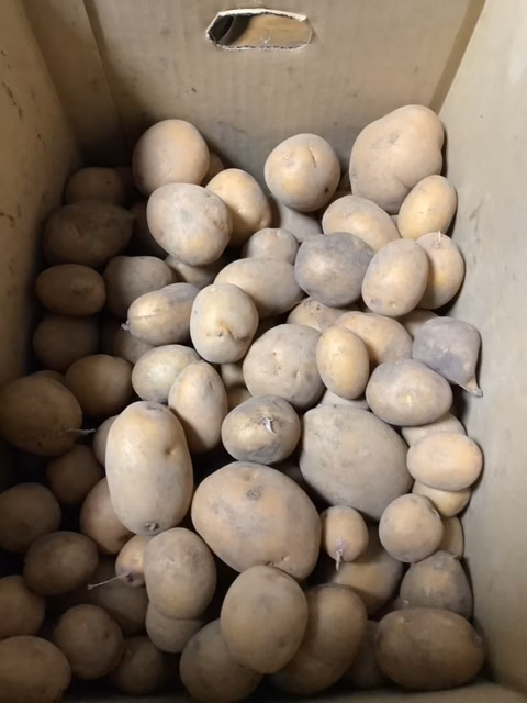 ▼キタアカリ。栗に似た食感と甘い味で大人気。このホクホク感とコクのあるおいしさをぜひじゃがバターなどでご賞味ください。