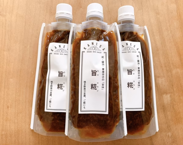 有機米糀と国産丸大豆醤油を贅沢に使った、万能発酵調味料「旨糀(うまこうじ)」。
